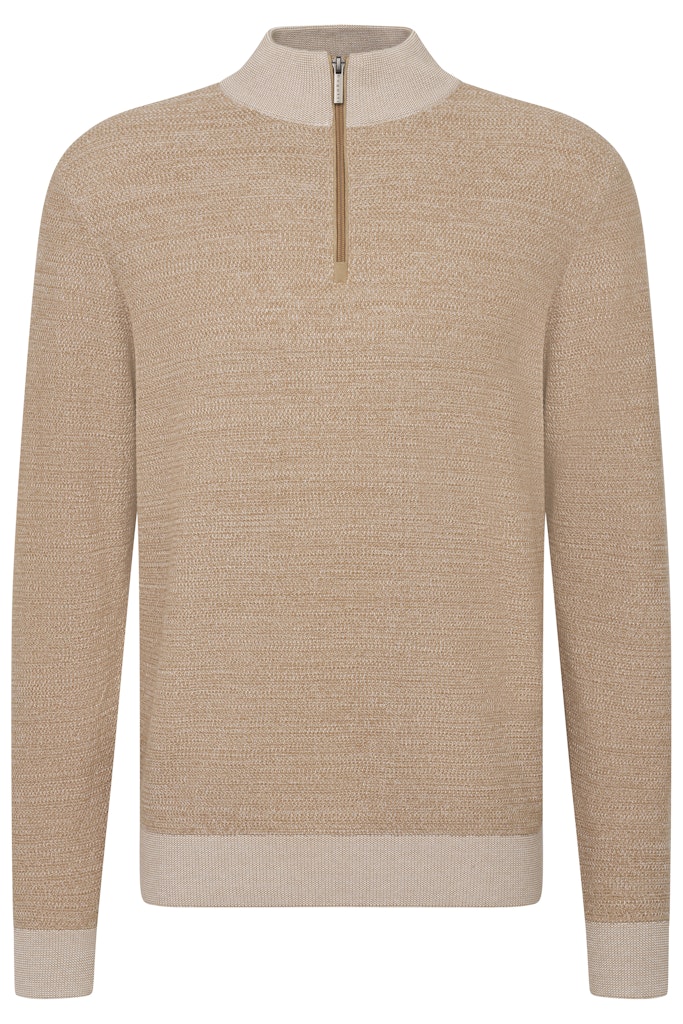 Trui van Bugatti in een gemêleerd dessin met lange mouwen, opstaande kraag voorzien van korte ritssluiting en contrasterende ribgebreide boorden.