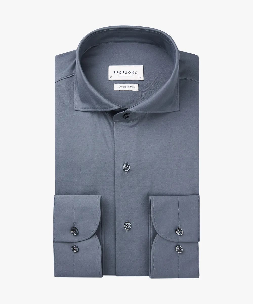 Japanese knitted overhemd van Profuomo met lange mouwen, wide-spread kraag en een knoopsluiting. Materiaal: Katoen 50%| polyester 50%