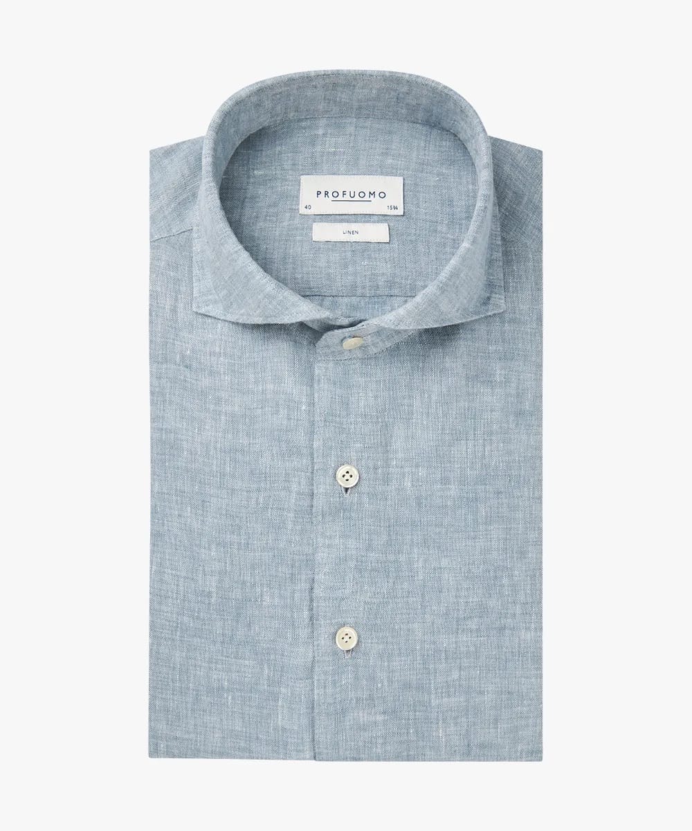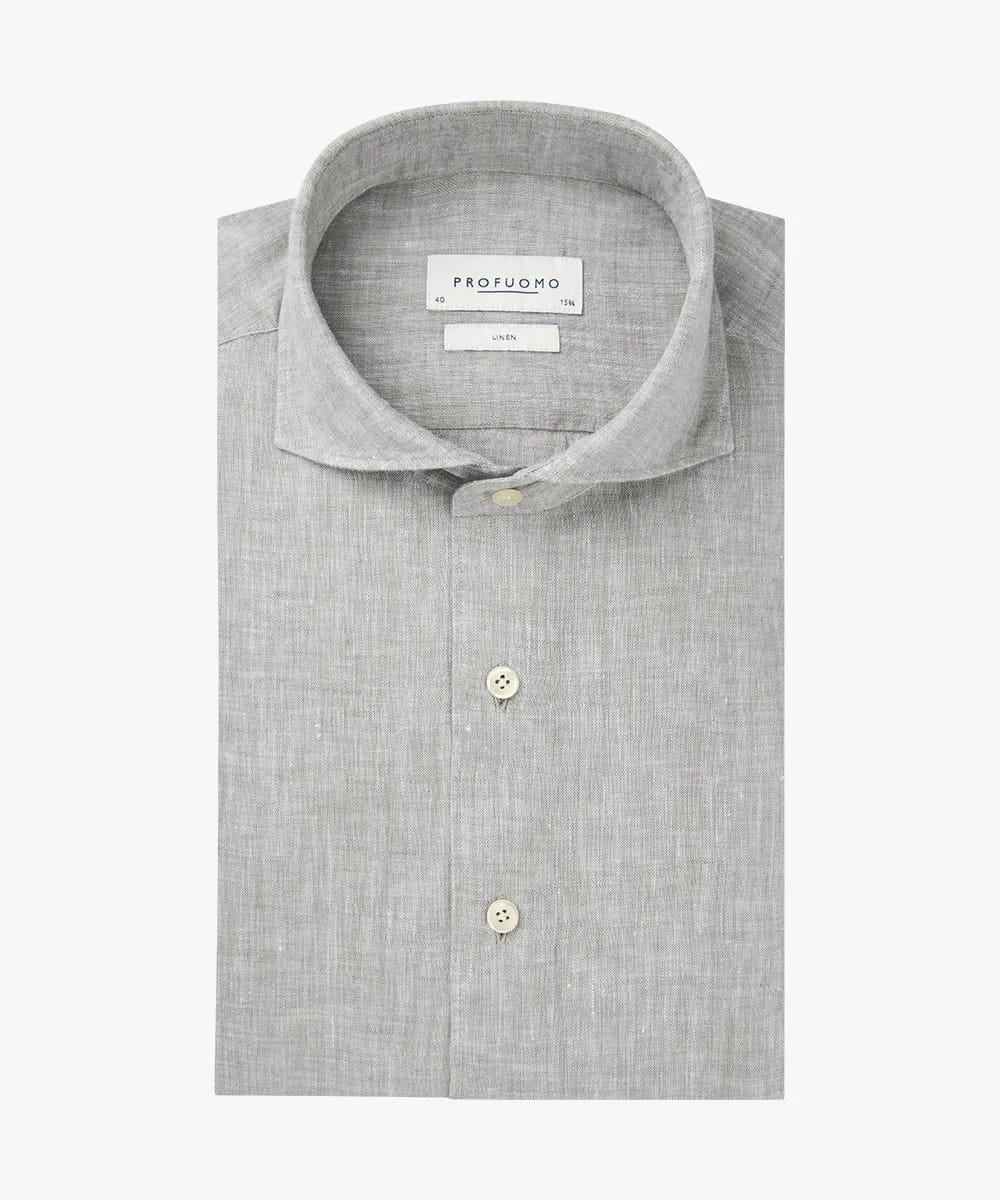 Linnen overhemd van Profuomo met lange mouwen, wide-spread kraag en een knoopsluiting. Materiaal: Linnen 100%
