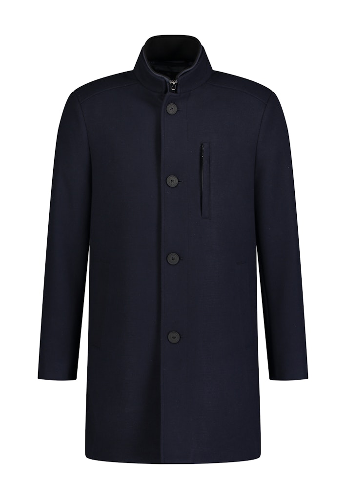 Mantel van Roy Robson met een knoopsluiting, opstaande kraag, gewatteerd inzetstuk voorzien van ritssluiting, steekzakken en een ritszak op de borst.
