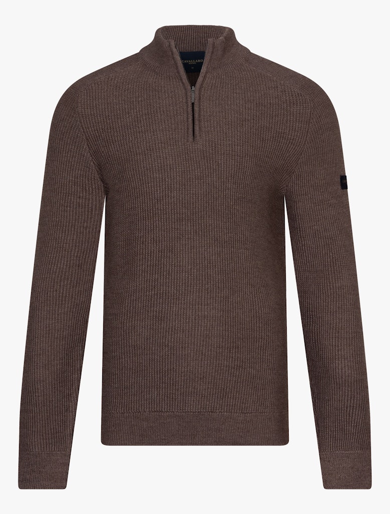 Trui van Cavallaro in een structuur dessin met lange raglanmouwen, opstaande kraag voorzien van korte ritssluiting, logolabel op de linkermouw en ribgebreide boorden.