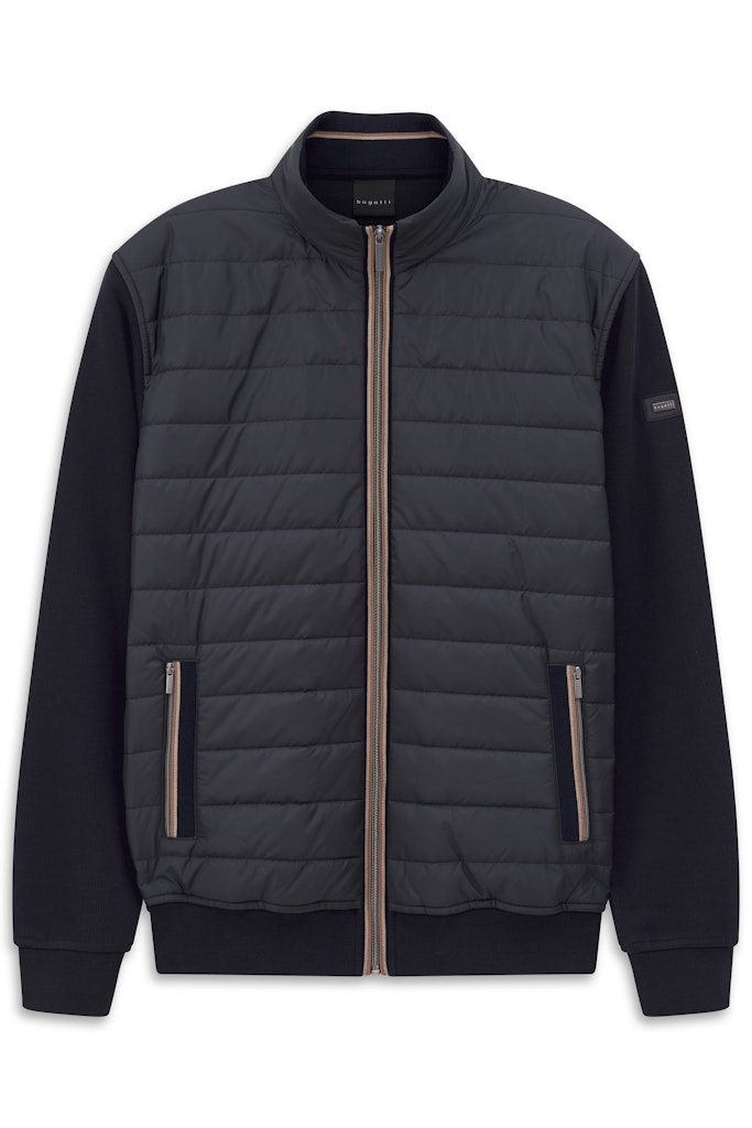 Sweatvest van Bugatti met een gewatteerde voorzijde, lange mouwen, ritssluiting, opstaande kraag, ritszakken en logo op de linkermouw.