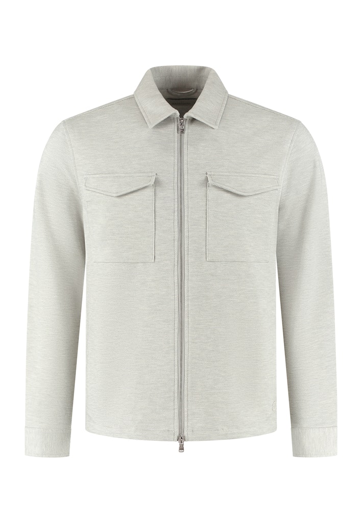 Gemêleerd vest van Dstrezzed met lange mouwen, ritssluiting, kraag en twee opgestikte klepzakken.