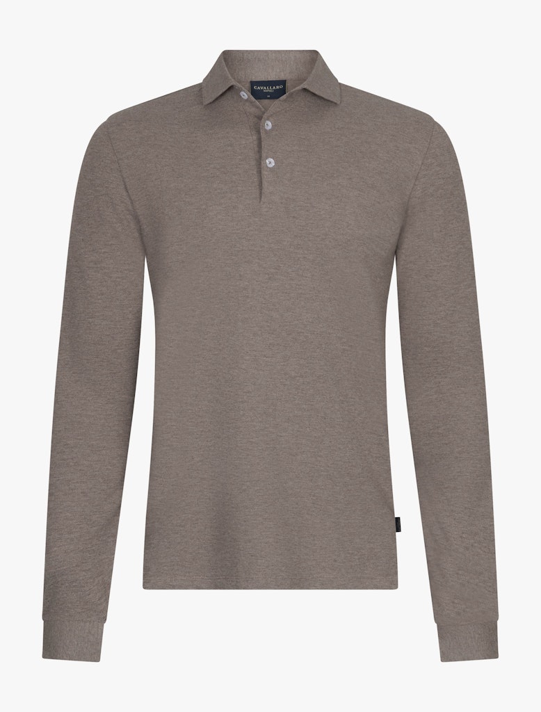 Gemêleerde polo van Cavallaro met lange mouwen en een polokraag voorzien van korte knoopsluiting.