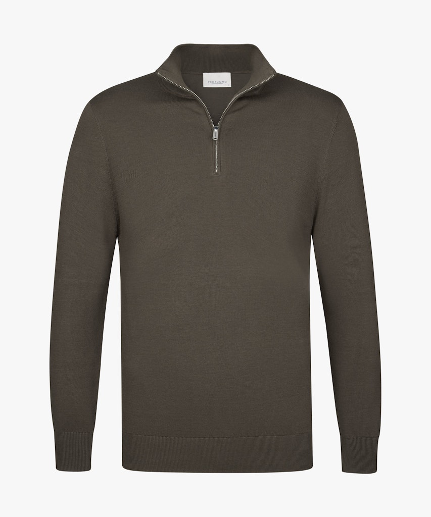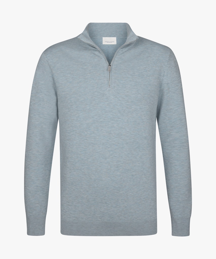 Fijn gebreide trui van Profuomo met lange mouwen, opstaande kraag voorzien van korte ritssluiting en ribgebreide boorden.