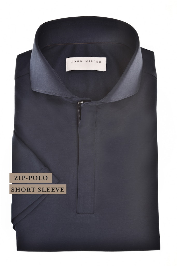 Poloshirt van John Miller met korte mouwen en een cataway kraag voorzien van korte ritssluiting. Materiaal: Katoen 100%