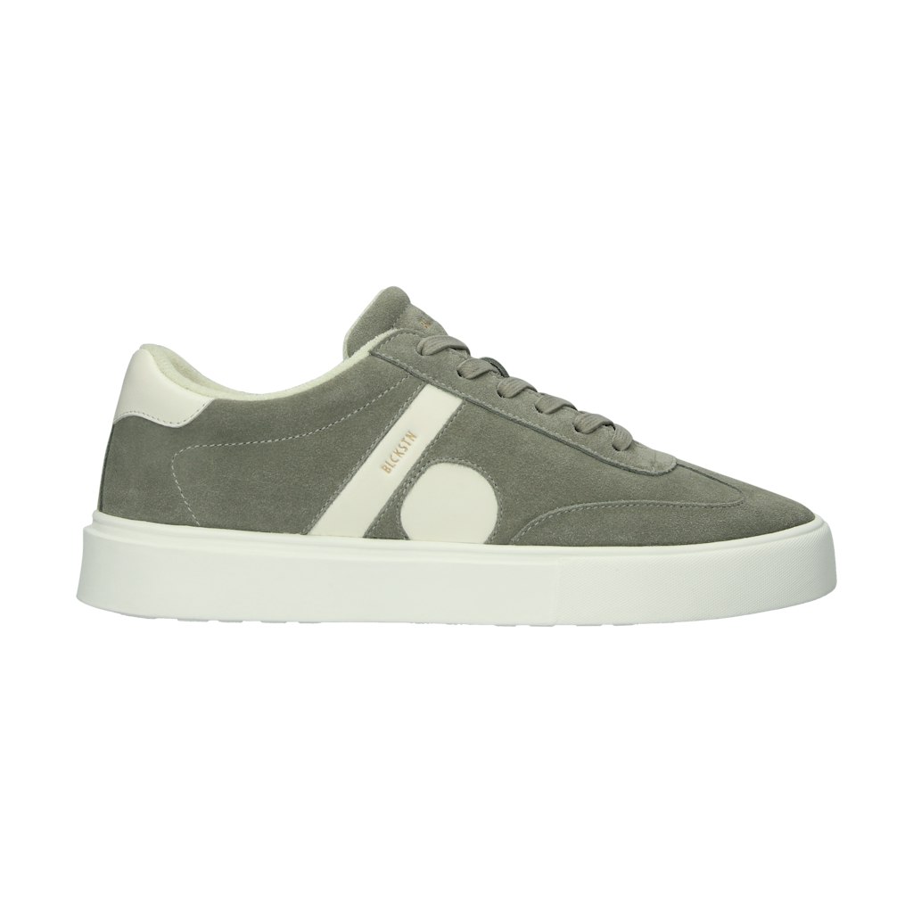 Suède sneaker van Blackstone met een verttersluiting en een rubberen zool.