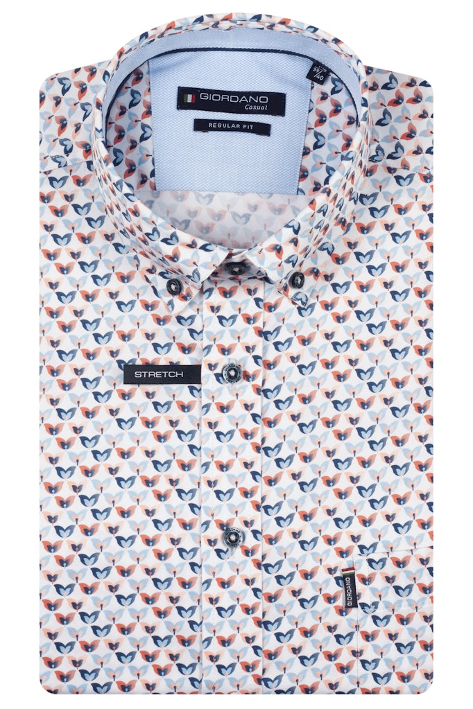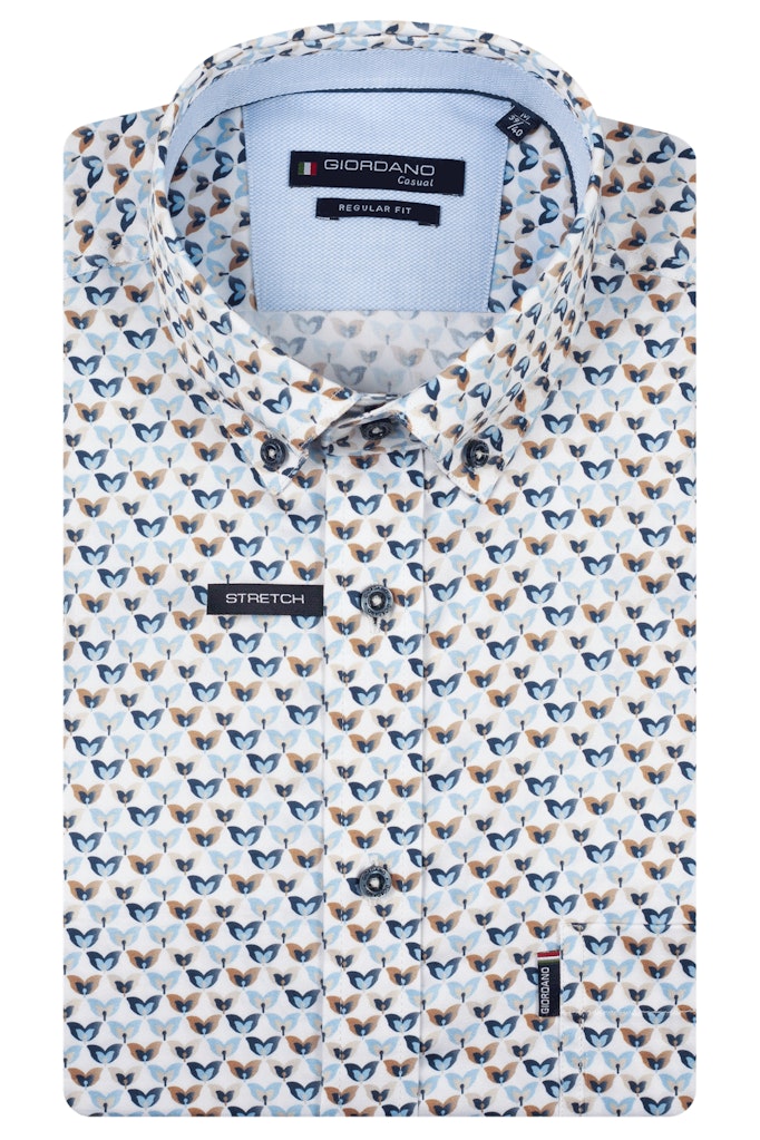 Overhemd van Giordano in een all-over dessin met lange mouwen, button-down kraag, knoopsluiting en een opgestikte borstzak. Materiaal: Katoen 97%| elastan 3%