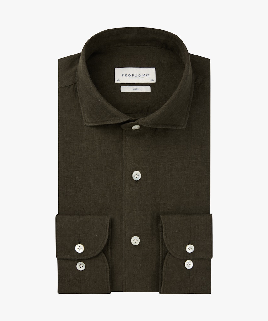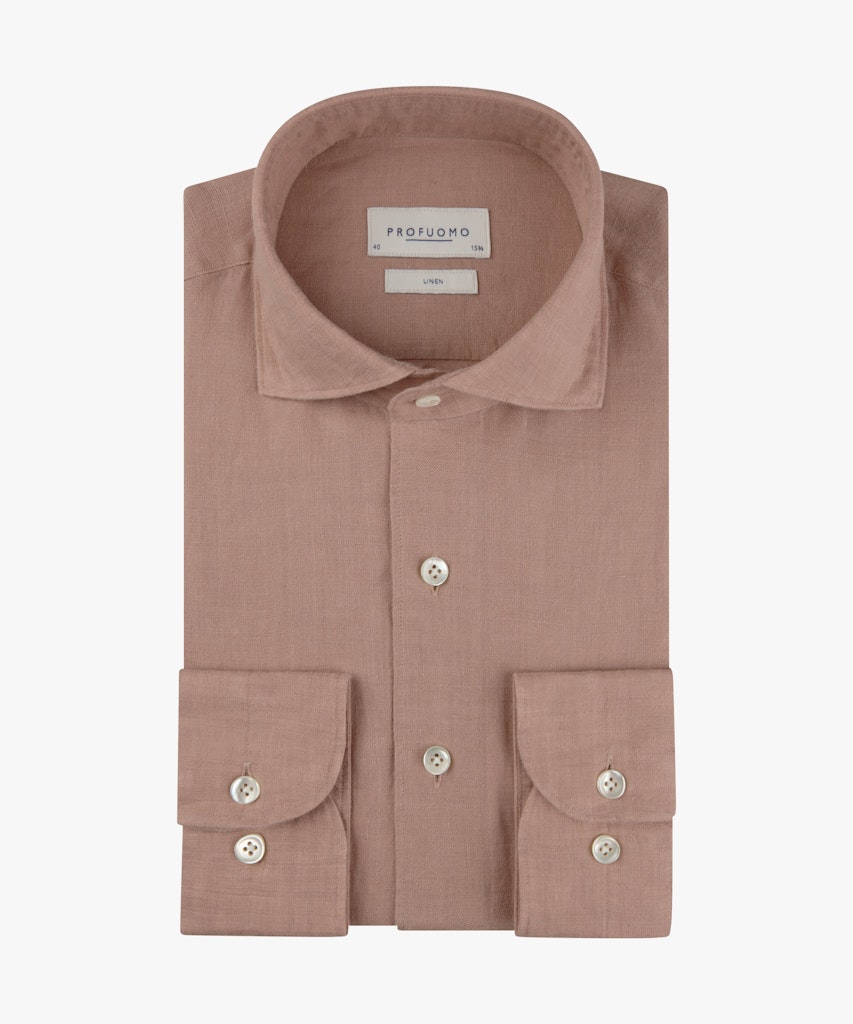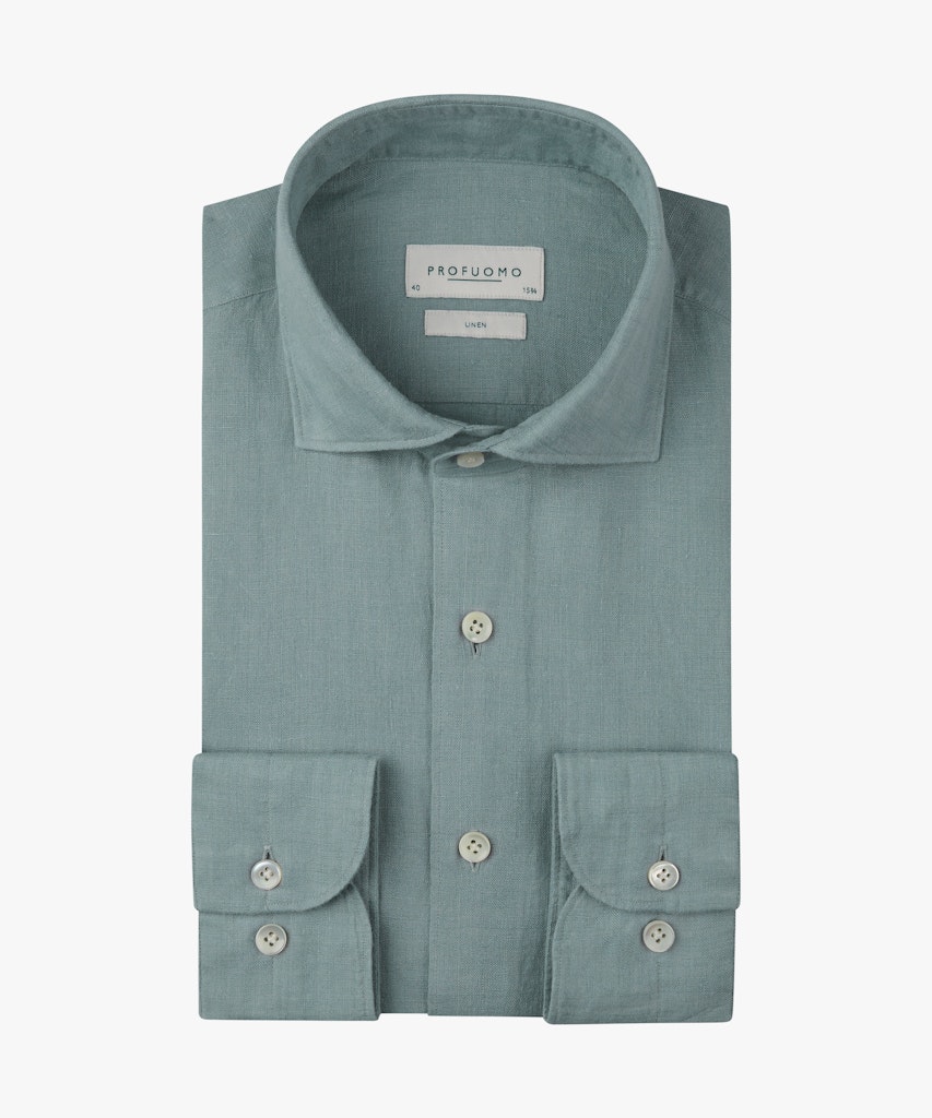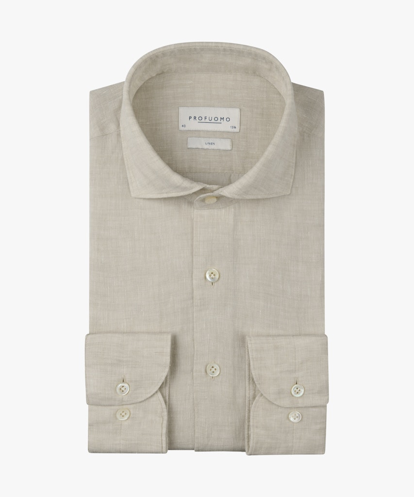 Linnen overhemd van Profuomo met lange mouwen, wide-spread kraag en een knoopsluiting. Materiaal: Linnen 100%