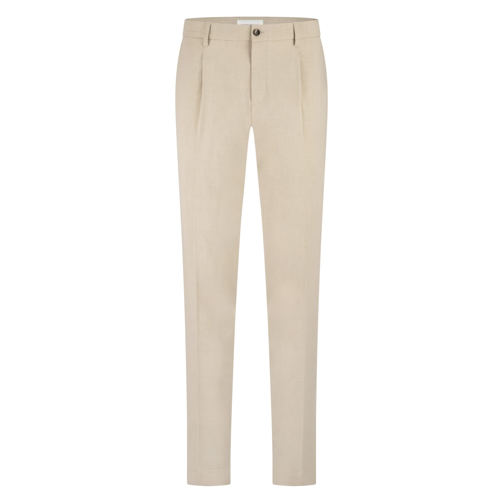 Broek van Seven Dials in een subtiel dessin met een knoop- en ritssluiting, bandplooien en steekzakken. Materiaal: Polyester 66%| viscose 28%| elastan 6%