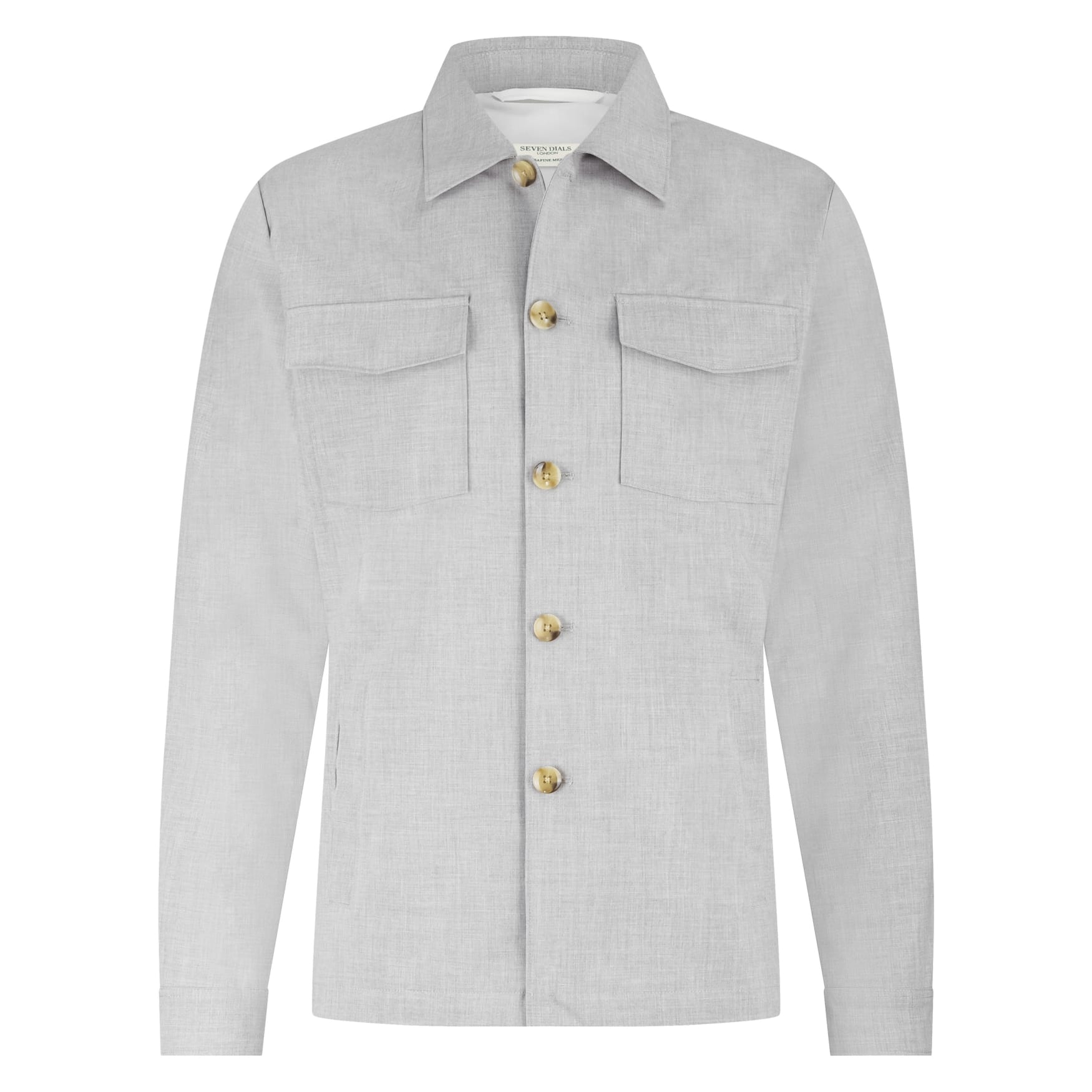 Overshirt van Seven Dials in een luxe wol-look met lange mouwen, kraag, knoopsluiting en twee opgestikte klepzakken op de borst.